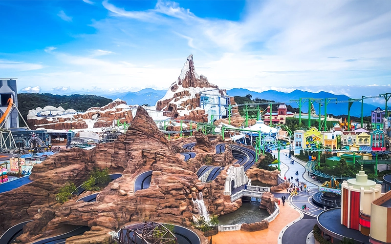 Genting Highlands, a mountain resort in Pahang, is Malaysia’s premier entertainment destination. Known for its cool climate and vibrant attractions, it’s perfect for families and thrill-seekers.
